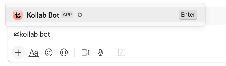 Kollab Bot을 Slack 워크스페이스 또는 Telegram 그룹에 추가합니다.